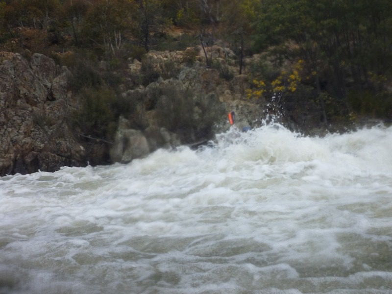 Greg as he rolls and breaks his paddle in a bad spot on the same rapid.