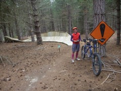Nasby is a small town with maybe 50 permanent residents but it was once the capital of Central Otago. The local forest has a recreation area which has some good mountain bike tracks so it was a destination we had to try. The weather was cold and bleak when we arrived lat Sunday morning but we finally got out riding. The tracks were a bit difficult and poorly defined around the gold diggings were we headed first as there was no real MTBing map or clues as to where was best to ride. It wasn't until our second session after a late lunch and the snow shower had passed that we found the better tracks on the far side of Wet Gully Road near Hoffmans Dam. The "cover" photo is in the "Sandpit" area which was relatively flat and full of (ball-bearing like) pine cones but a fun little area.
