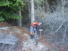 Thursday morning I bought a new tyre in Westport where we had stayed the night. I put that on with sealant and we drove up the Coast to Seddonville where the Old Ghost Road ends to ride up and back on the other end. The views were great but we tore a hole in the side wall of the new tyre at about 15.5km. We walked the last 1.5km to a hut were we had a very late lunch and tried to repair the tyre. I colluded re-bead the tyre to run tubeless and finally we put a tube in and rode the fun track back to the car where we slept the night.