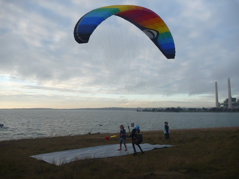 Jocky debriefing pilots at end of first course 15th Jan 13 A few twists as I spun instead of SAT A ski landing A wet landing for one of course 2 pilots Back flying or Tail sliding Another very close landing Off to Lake St Clair for a cross country flight for Greg & Andrew. I didn’t get away. Some sledys on 18th Andrew lands after short sledy. Annette models her new jeans on 19th after whopping in Musselbrook Andrew practices Cobra launches on 19th Rainy all day Sunday 20th and Jocky gives talks in Rotunda Course 3 starts well Though there are a lot of water landings!